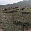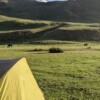 Die andere Talseite ist deutlich höher, dort gibt es schon die ersten Sommerlager mit Pferden.